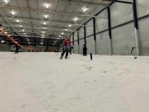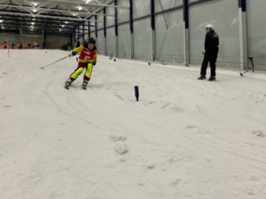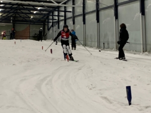 Tegenstand kreeg Jinze vanavond van Vesper, ook 8 jaar, maar net iets langer lid en daarom haar techniek al iets meer verbeterd. In de runs was Vesper dan ook sneller. Marcel, één van de Young MRD trainers gaf de dames nog een geheime tip “Vanavond mogen jullie niet netjes skiën, jullie moeten super snel te gaan”. Ook met deze aanwijzing kon Jinze Vesper niet inhalen.