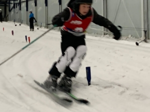Freek skiet in de U12-H categorie en haalde in de eerste drie heats de snelste tijd van 13.96 met deze snellere tijd dan Lauren kon Freek prima leven.